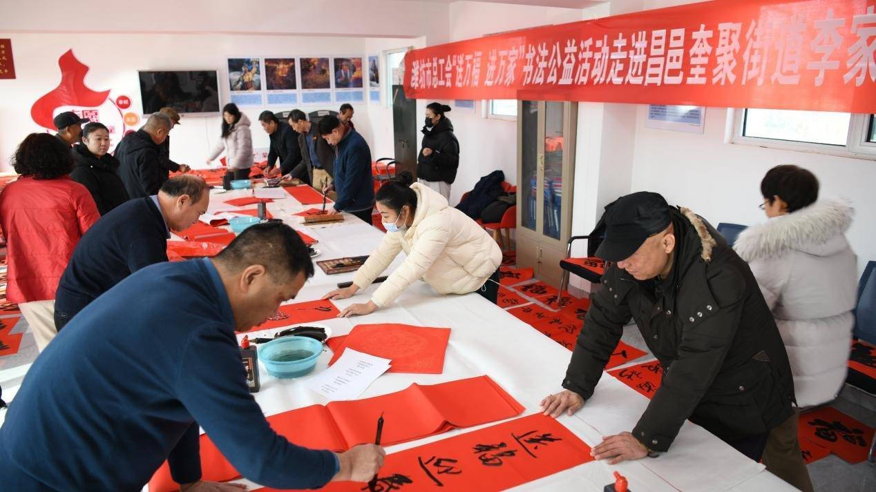 红纸铺展承福运,笔墨飞扬送春来。近日,昌邑市奎聚街道李家埠社区辛庄新村党群服务中心里暖意融融,墨香四溢。潍坊市总工会组织的“送万福·进万家”书法公益活动在这里热闹举办,6位书法爱好者挥毫泼墨,为村民们现场书写“福”字和春联,将浓浓的年味与真挚的祝福送到群众心坎上。