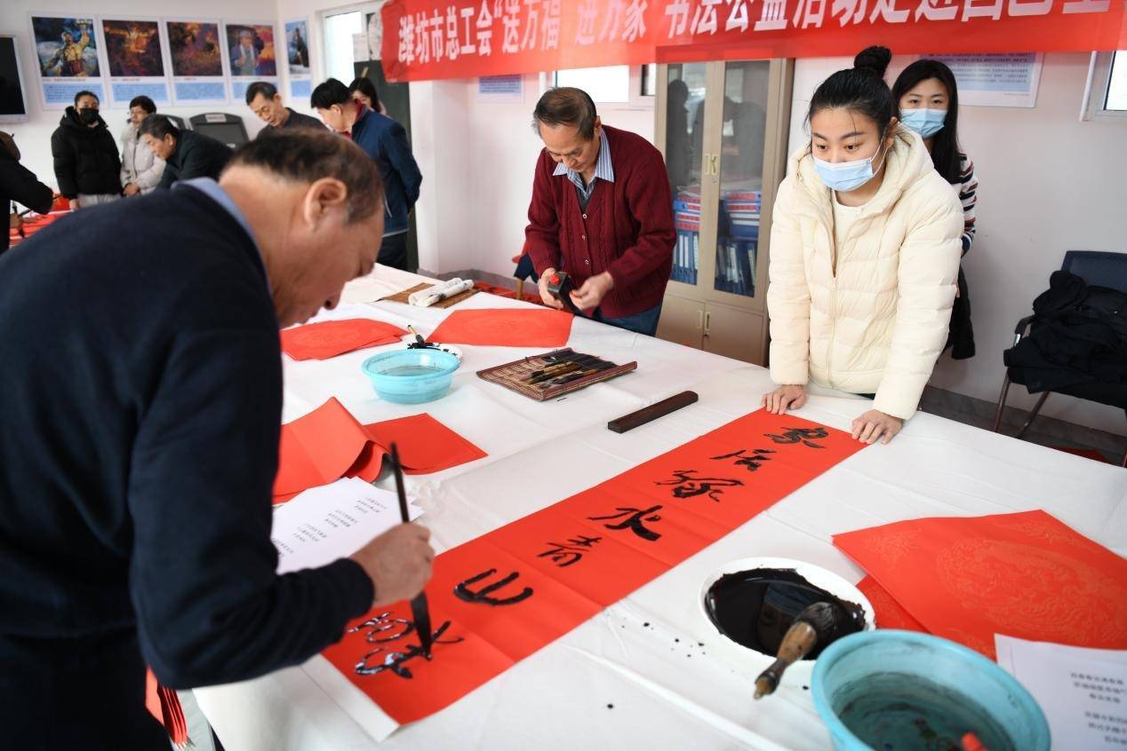 全市各级工会同步启动该活动,分别组织书法爱好者进企业、社区、商户、学校广泛开展“送万福 进万家”书法公益活动……通过将书法艺术与新春民俗相结合,既丰富了职工的精神文化生活,又营造了喜庆祥和、崇德向善的节日氛围。截至目前,全市各级工会现场书写并送出春联“福”字上万副。